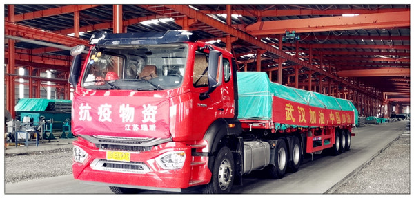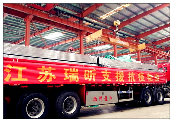 2020年2月6日下午,隨著一輛懸掛有“武漢加油 中國(guó)加油”橫幅的大貨車(chē)緩緩駛出江蘇瑞昕金屬制品科技有限公司大門(mén)。